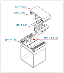 MTI ist ein einfaches Konstruktionssystem mit Profilen in 10 verschiedenen Formen aus Leichtmetall von bester Qualität (SQS-Zertifikat ISO 9001). Welches mit Glas-Profilhalter in Kunststoff auf